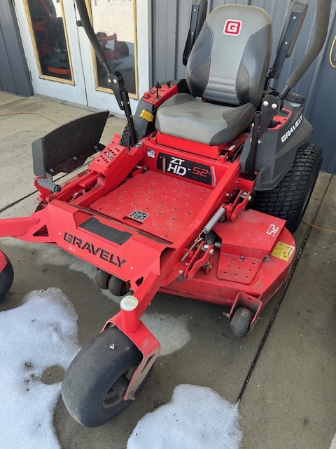 Used Gravely ZTHD 52 23 hp Kawasaki FR691 Engine, Hydro Gear ZT-3100 Transmission 52" Fabricated Cutting Deck 350 Hours Mower Has Been Serviced No Warranty $3200